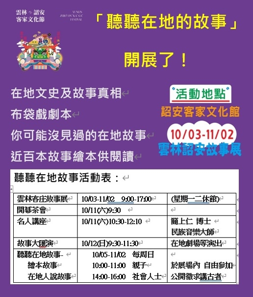 10/3–11/2 在詔安客家文化館,邀請你一起 聽聽在地的故事