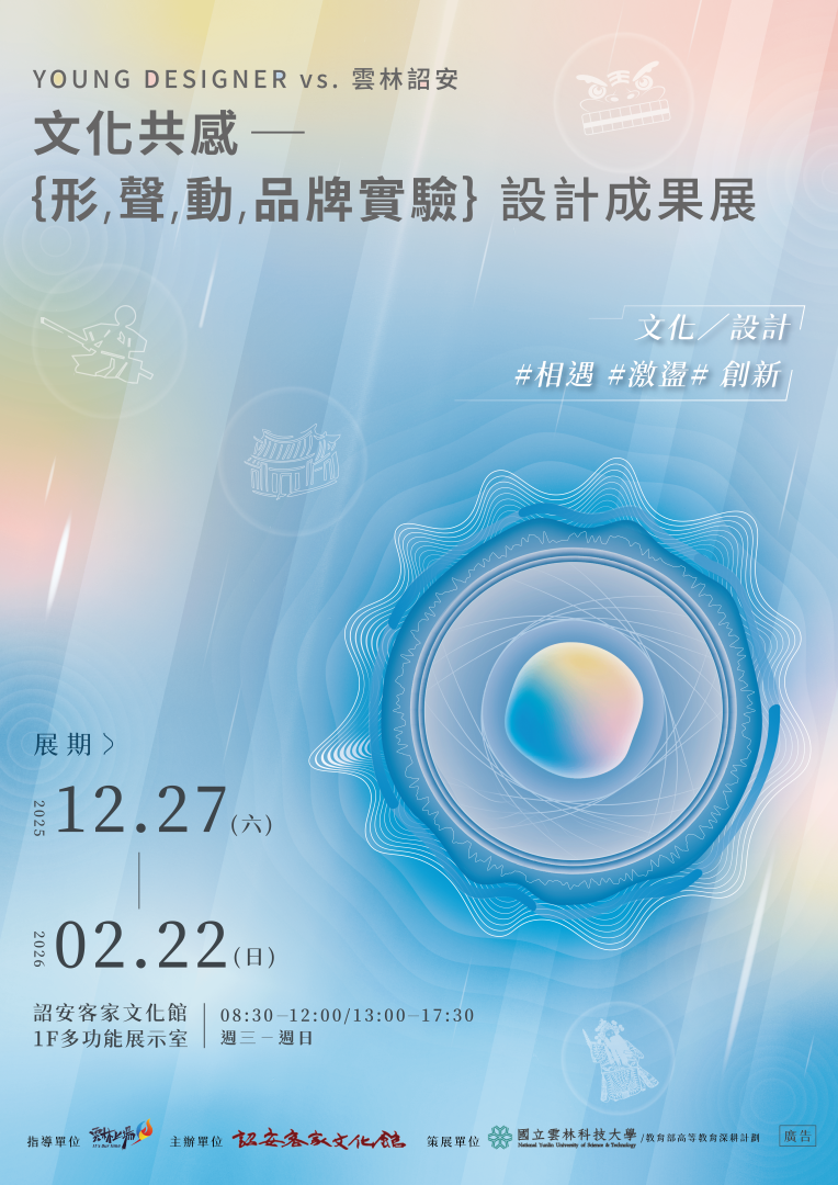 本次展覽由雲科大設計團隊深入雲林詔安客家文化脈絡,透過「形、聲、動」及品牌實驗等多元設計語彙,呈現文化轉譯與創新實踐的豐碩成果,展現設計與地方文化交會所激盪出的全新可能。